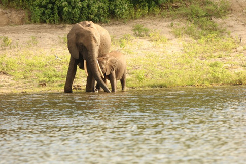 Na vier uur rondjes rijden besluiten we dat het wel mooi geweest is en we liever nog even een uurtje slapen op de camping. Want 's middags stond er nog een boottocht op het programma. Ook van deze boottocht hebben we van iedereen goede verhalen gehoord, je zou hier ook weer honderden olifanten moeten kunnen zien en nog veel meer. Aangezien we 's morgens niks hadden gezien waren we er al bang voor, die olifanten kregen wij niet te zien. Op het allerlaatste moment vinden we gelukkig nog één moeder olifant met een kleintje maar daar blijft het bij. Wel zien we heel veel krokodillen, nijlpaarden, buffels en prachtige vogels. De tocht is dus niet helemaal voor niks geweest gelukkig en we sluiten Botswana met een goed gevoel af.