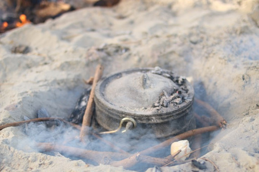 Het is vele van jullie al opgevallen dat we beide, maar vooral Maarten, erg veel zijn afgevallen. Dit heeft deels te maken met het intensieve dagelijkse leven maar ook met het eten. Zoals gezegd is er niet veel variatie te vinden en soms is er überhaupt lastig eten te vinden. Ontbijten doen we bijna altijd met een broodje ei of pannenkoeken met suiker. De lunch vergeten we vaak of we kunnen niets vinden dus smeren we maar weer een stukje la vache quiri op een stokbroodje of halen wat rijst langs de weg. Als we wel goed lunchen is dat meestal omdat we in een restaurant zitten. Avond eten lukt vaak wel aardig, als we met andere zijn koken we eigenlijk altijd goed maar ook zelf proberen we meestal wel te koken.We maken potjie, verschillende soorten pasta, chili met guacamole, en ja eigenlijk is dat het dat dan wel. Elke keer gaan er andere kruiden in waardoor het toch een beetje een andere smaak krijgt. Tussendoortjes zijn eigenlijk vrijwel niet beschikbaar. Af en toe zijn er pakken koeken te vinden maar een pak simpele oude biscuitjes kost al snel ā¬1.50, en zo lekker zijn ze echt niet. We nemen soms een zakje pinda's maar dat is ook eigenlijk schreeuwend duur. Als we uit eten gaan kunnen we twee dingen doen, we halen bij een kraampje langs de weg iets lokaals of we gaan naar een redelijk restaurant en eten een fatsoenlijke hamburger. We vinden het eten langs de weg eigenlijk vaak erg lekker, het is erg goedkoop en je support er de lokale bevolking mee, win win dus. Toch hebben we soms ook gewoon trek in iets anders dan kip dus dan gaan we toch naar een restaurant.